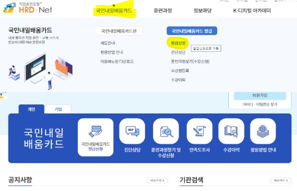- 홈페이지의 국민내일배움카드탭을 클릭