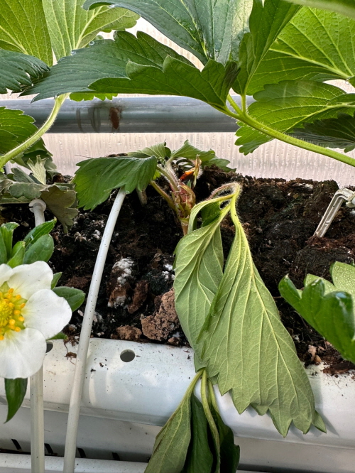 딸기는 잎이 크면 클수록 좋다고 합니다. 잎으로 인해 그늘이 지기 때문에 딸기 생육에 효과적이기 때문입니다. 딸기는 물이 부족하면 잎이 오므려지는 현상이 발생하고, 물이 과다하게 되면 늘어지게 됩니다.