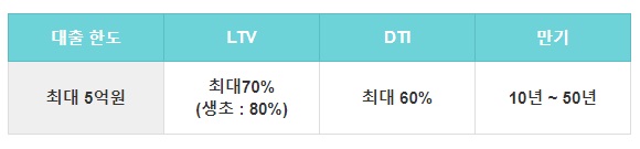 만기상환은 10년에서 최대 50년까지 가능하니 부담 없이 이용이 가능합니다. LTV와 DTI를 모르시는 분들도 계시기 때문에 제가 짧게 설명을 해드리겠습니다.