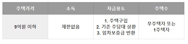 1. 대출 신청은 9억 원 이하의 주택이 대상이다.