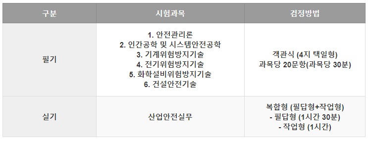 산업안전기사 시험일정 및 시험과목